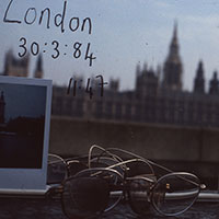 „During his residency in London in 1984 Pete Horobin made a super8 film titled Correspondence Exchanges – there should be a dvd of this in the collection of dvds @ artpool – in the wooden box of Moving Images made by Peter Haining – each correspondence exchange was made with a different visitor to London – this one shows the exchange with Ben Allen from Northern Ireland – spectacles were exchanged – a different personal item was exchanged each time – eg shoes/Stewart Home – passports/Georg Ladanyi” Email from Peter Haining, 4 October, 2023