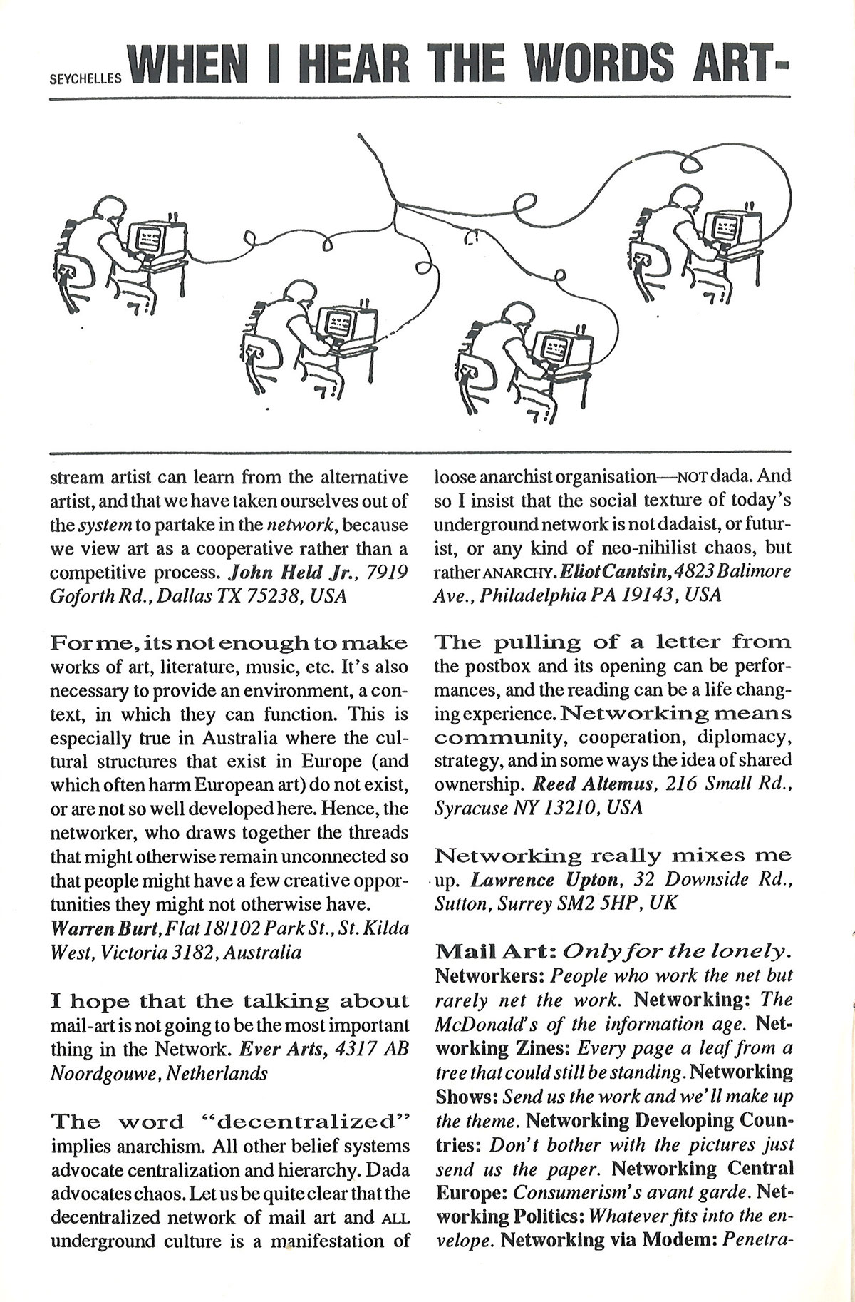 Statements by John Held, Jr., Warren Burt, Ever Arts, Eliot Cantsin, Reed Altemus, Lawrence Upton