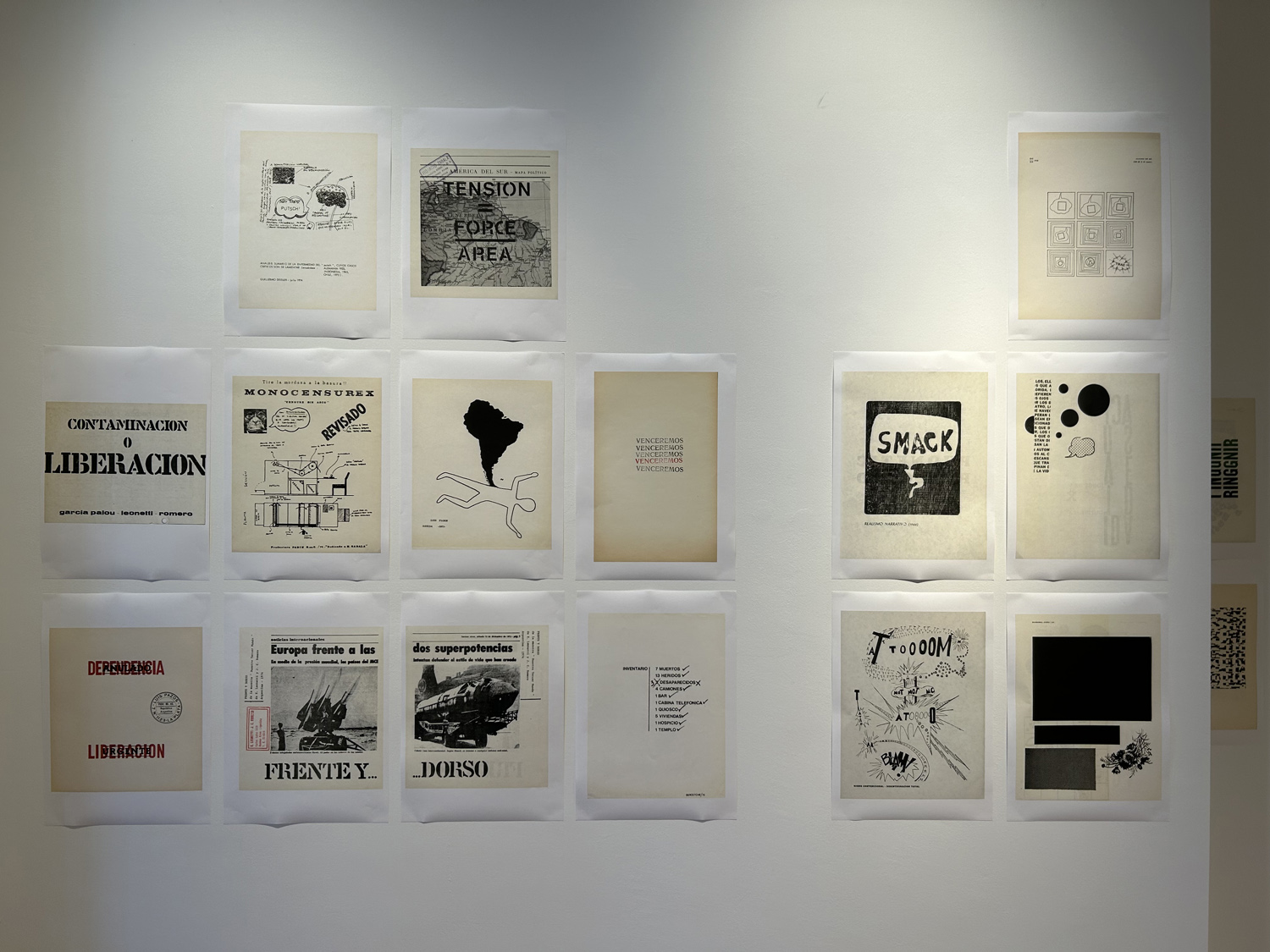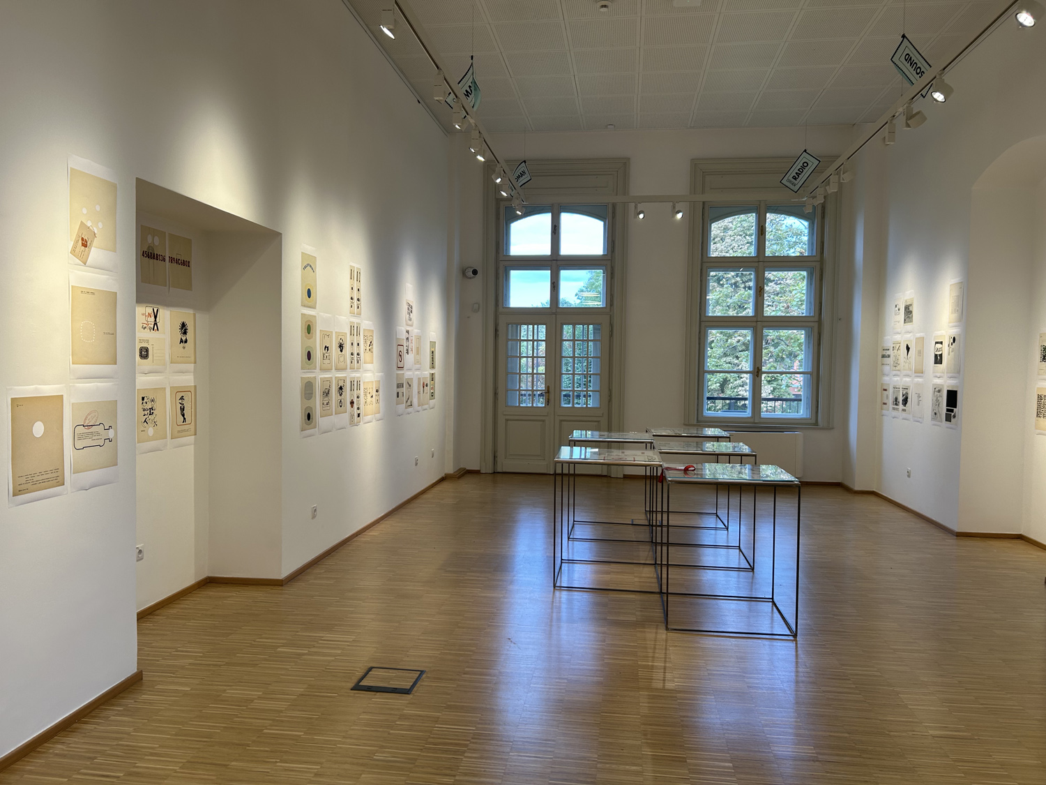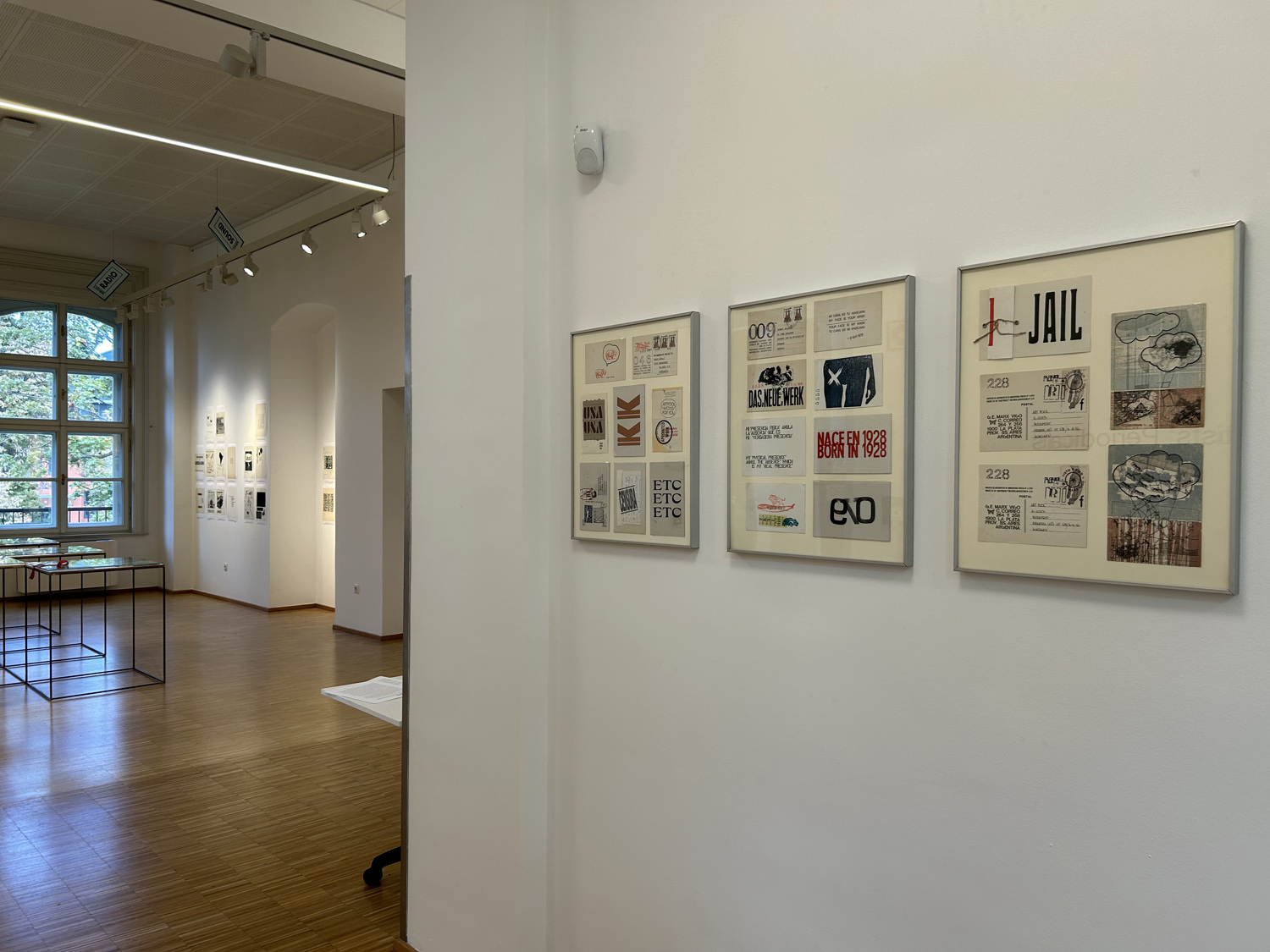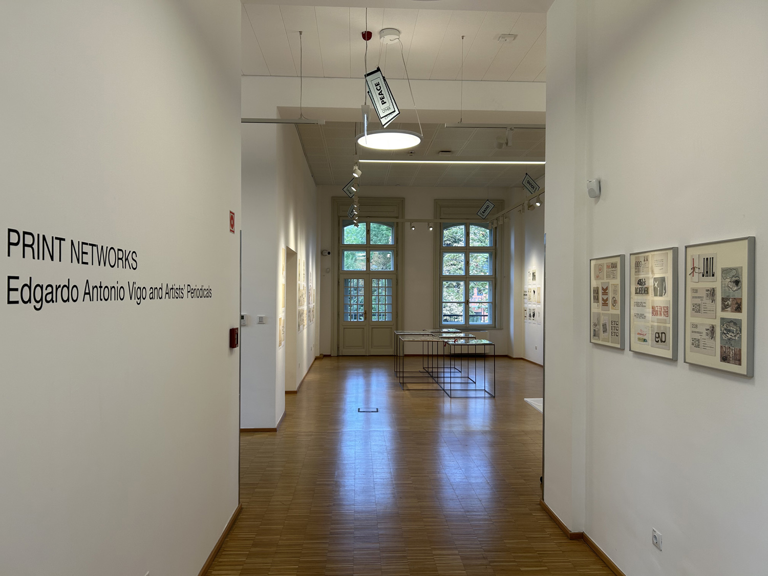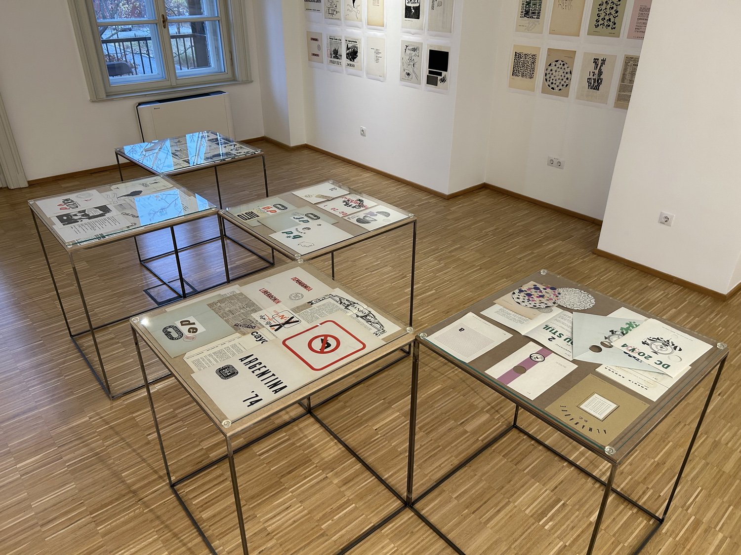 Display from Artpool's collection of selected issues of the artists' magazines created by E. A. Vigo, including Diagonal Cero (1962–69) and Hexágono ’71 (1971–75), selected pages from the periodicals enlarged on the walls, a selection of postcards sent by Vigo to György Galántai / Artpool, László Beke and Peter Küstermann of Germany in the 1980s, as well as his works published in the publications of other mail artists.