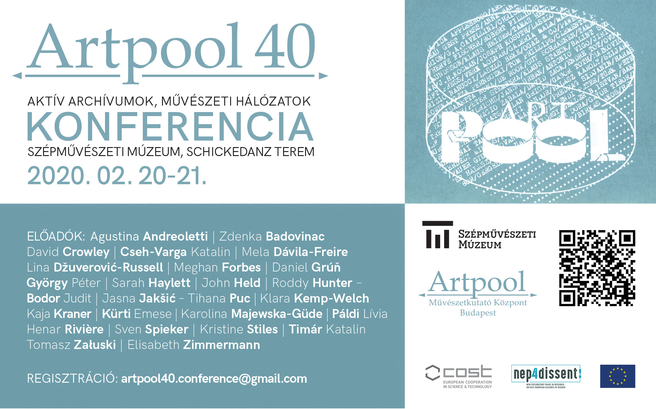 Ennek a különleges időszaknak a záróeseménye volt 2020 februárjában a Szépművészeti Múzeumban – a COVID kitörése előtti utolsó napokban – megrendezett "Artpool 40 – Aktív Archívumok, Művészeti Hálózatok" c. nagy érdeklődést kiváltó nemzetközi konferencia