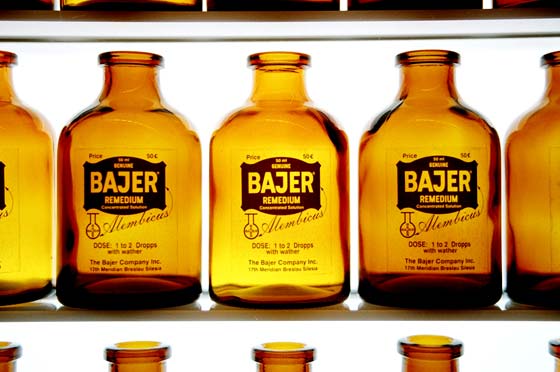 Bajer Remedium, 2005, detail, 45 x 100 x 16 cm /aluminium, plexiglass, 115 botels 50 ml contain/
