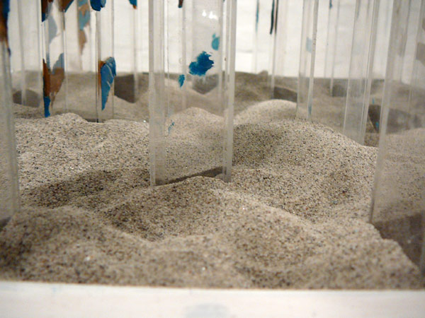 Hegedűs Anett: Megnyilatkozás, installáció, plexi hasábok, olajfesték, variálható méret, 2008
