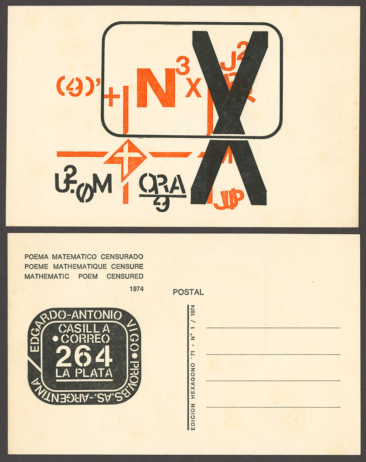 Work by Edgardo Antonio Vigo (Mathematic Poem Censured)