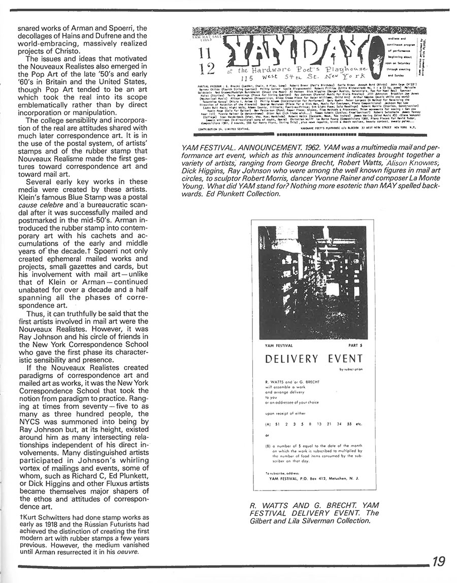 Friedman, Ken: Mailart History: The Fluxus Factor, in: Wilson, Martha – Ronny Cohen (eds.): The Flue Vol. 4, No. 3/4, Special Issue - Mail Art, Franklin Furnace, Winter, 1984, pp. 18-24.