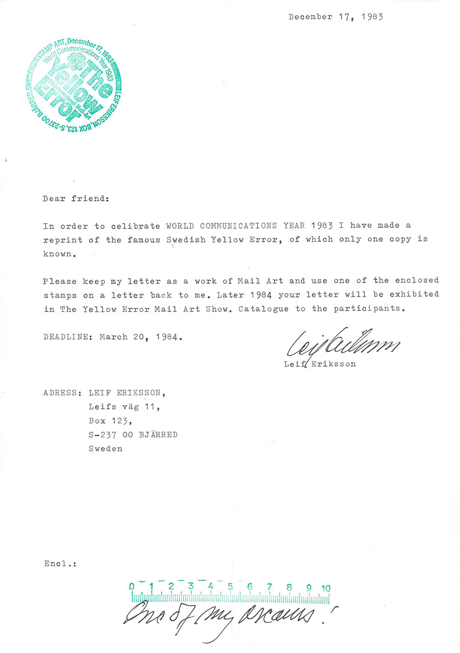 Introduction to the projects The Yellow Error International Mail Art Exhibition and Galerie S:T Petri, Archive of Experimental and Marginal Art.