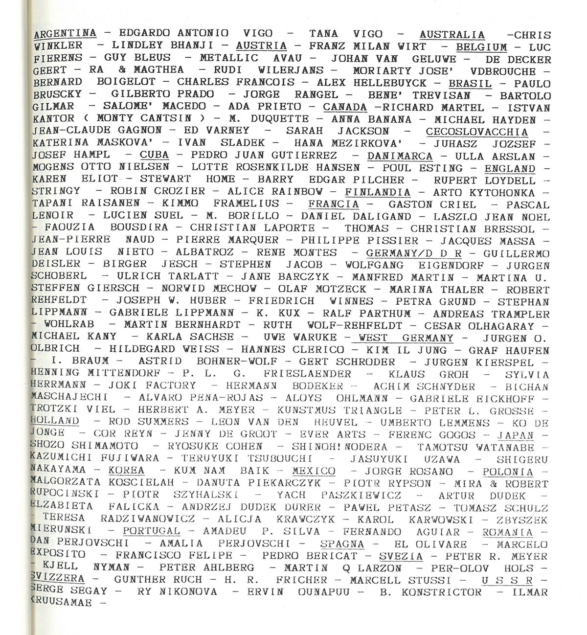 Works by Ruth Wolf-Rehfeldt & Robert Rehfeldt, Luca Brunori, S’Pool, Pierpaolo Limongelli, Andrej Tisma, Edgardo-Antonio Vigo & Tana Vigo, Sergio Morandi, Graf Haufen, Hildegard Weiss