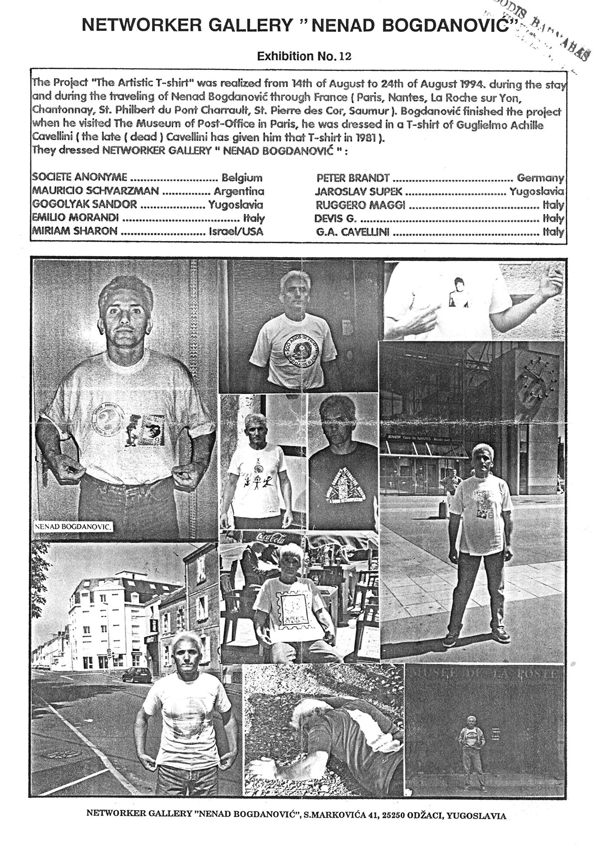 (24 August, 1994, France) was showing T-shirts while Bogdanovic was travelling through France. He was wearing and changing the shirts sent by the participants for his international call: The Artistic T-shirt