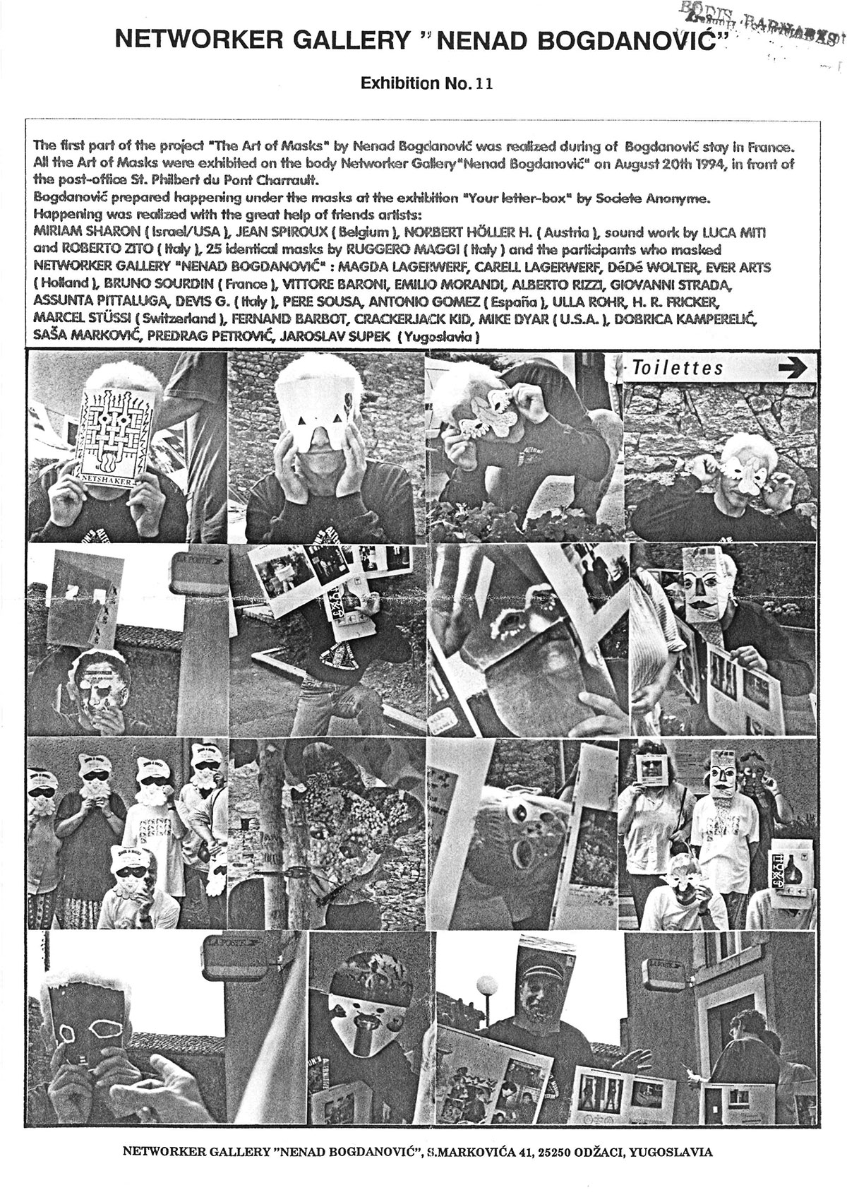 (20 August, 1994, St. Philbert du Pont Charrault) was showing masks sent for Bogdanovic’s project The Art of Masks