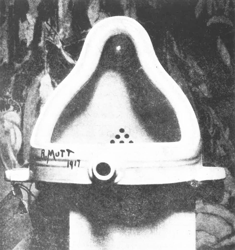 Marcel Duchamp: R. Mutt Szökőkútja, a Little Review 1917. májusi számából, szerkesztette: Marcel Duchamp, Henri-Pierre Roche és Beatrice Wood. Fotó: Alfred Stieglitz. A fotónyomat az Alternative Traditions in the contemporary Arts Archive, University of Iowa, Iowa City, Iowa tulajdona.